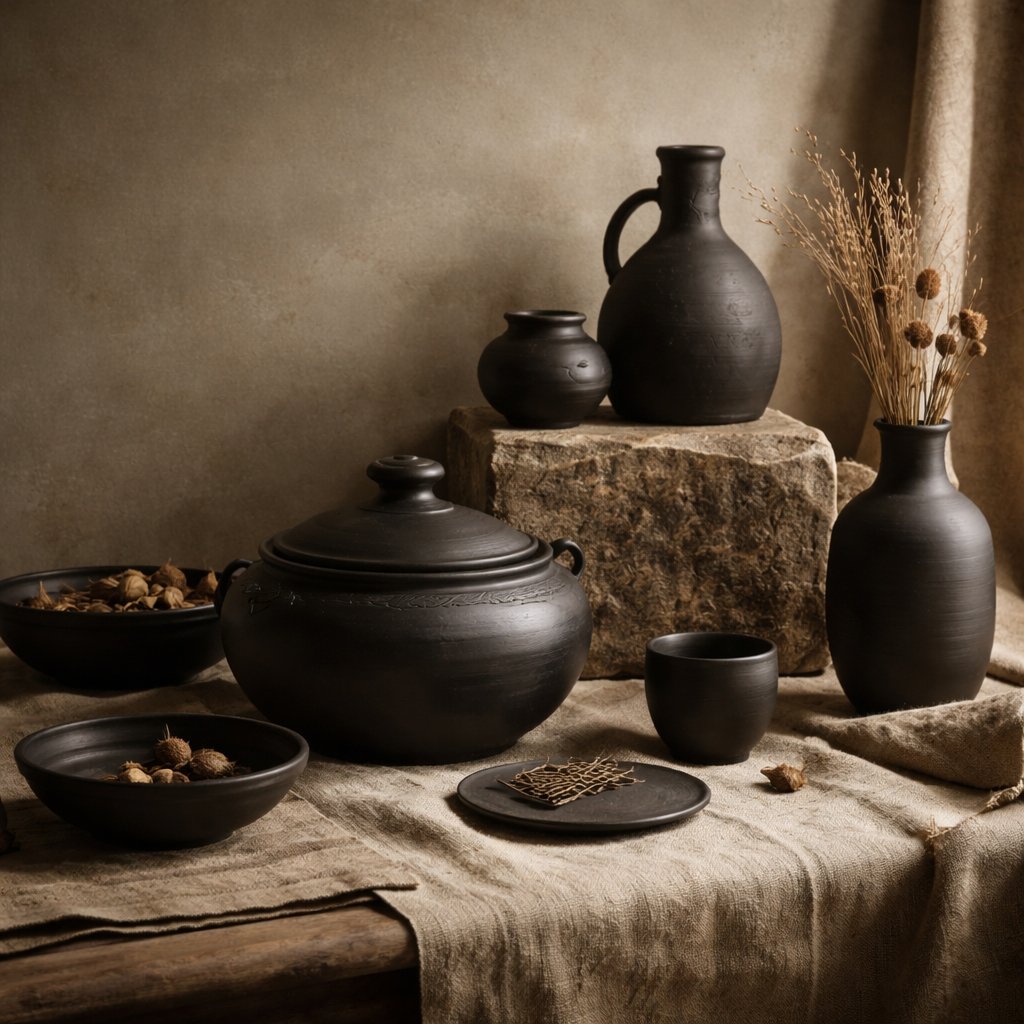 Pottery should be handled with dry hands and kept away from prolonged moisture. Rugs should be rotated periodically and cleaned gently without chemical harshness.
